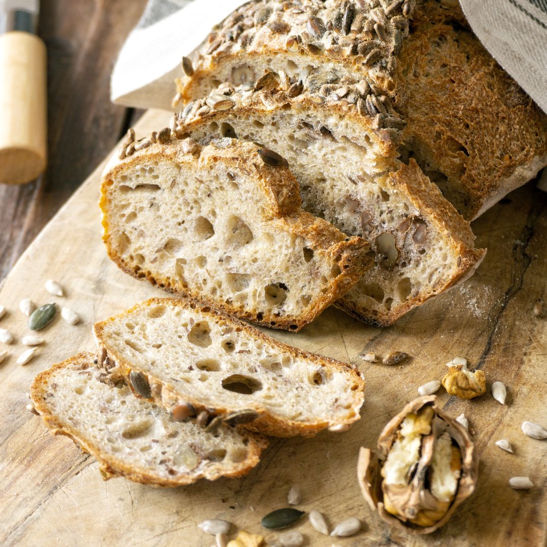 Unisce la ricchezza del pane integrale alla croccantezza dei semi e alla morbidezza delle noci. Un impasto profumato e genuino che celebra gusto, tradizione e benessere quotidiano.
